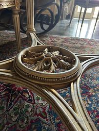 In vendita tavolo tondo con struttura in legno e piano in marmo rosso + 5 sedie in velluto ben tenute