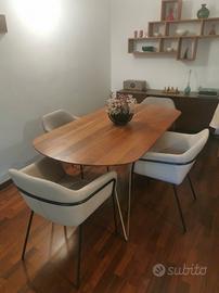 Le 4 sedie sono in tessuto (2 beige chiaro e 2 grigio chiaro)