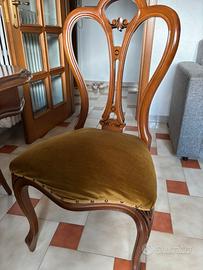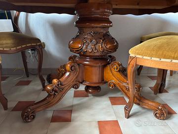 Tavolo in legno con sedie, anni ‘80. Ottime condizioni, rivedtimento sedie in velluto originale.