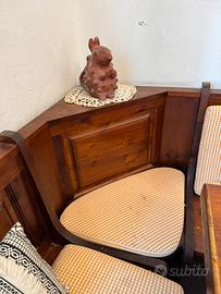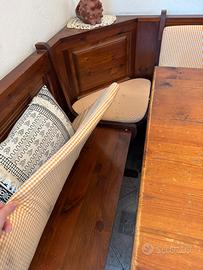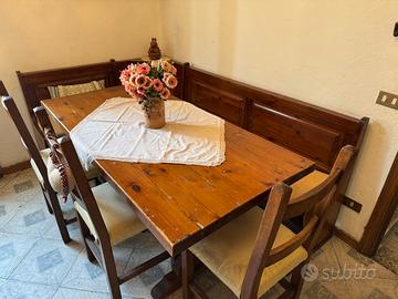 SVENDO ENTRO 20 giorni set completo da sala da pranzo composto da : - tavolo in legno - sedie - cassapanca artigianale a misura con cassetti integrati Misure 210 x 130 cm Venite a vederlo di persona, vendo anche cucina completa bellissima in legno noce nazionale con frigo, forno e lavastovoglie, tutto funzionante e in ottimo stato. Prezzo trattabile Massima serietà