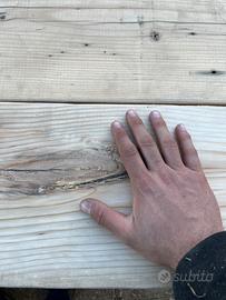 Tavolo fatto di assi allineate di abete, piedi in ferro battuto. Lunghezza 190 cm Larghezza 90 cm Spessore 4 cm NUMERO PEZZI: 2