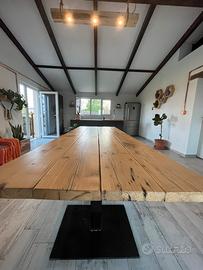 Tavolo in legno d’abete con piedi in ferro battuto