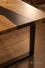 Tavolo in legno d'olivo secolare e resina epossidica nera.