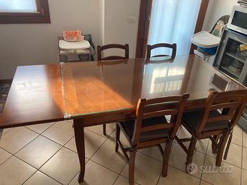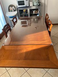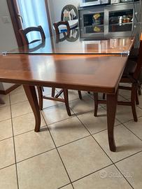 Vendo tavolo in legno allungabile 160•90•82 H cm con la possibilita di allungarla fino a 220cm ,comprese di 6 sedie impagliate. Inoltre il tavolo è coperto da un vetro con piccoli segni/strisci di usura ,con la possibiltà di rimuoverlo, messo apposta per non rovinare il legno stesso.