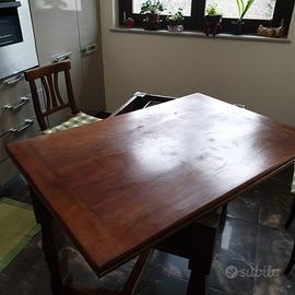 Vendesi tavolo a libro stile liberty in legno massello dei primi del 900 con secretaire. Incluse 4 sedie in legno. Acquisto previa visione.