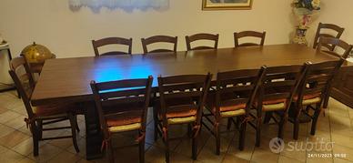 Tavolo in ottimo stato in legno massello da taverna Comprensivo di 12 sedie Già smontato e imballato, pronto per il ritiro Ritiro a carico dell’acquirente Solo ritiro a mano no spedizione