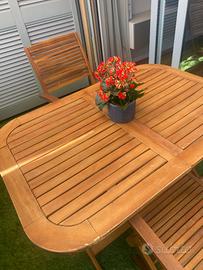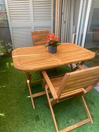 tavolo in legno di acacia estendibile e richiudi bile 120/160x80 (vedi annuncio separato) In abbinamento 4 sedie in legno di acacia con braccioli e richiudibili a 160 euro (oltre al prezzo del tavolo). Vendibili anche separatamente a coppia di due