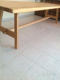 Tavolo in legno di castagno lucidato lunghezza tre metri per 10-12 commensali. Acquistato direttamente dalla fabbrica, come ultimo pezzo di una serie destinata al settore contract. Prodotto in Bovolone. Si vende per cambio arredamento a seguito lavori di ristrutturazione. Mai utilizzato per consumare cibo. Condizioni perfette. Richiede trasporto professionale con mezzo. Si vende solo su Verona e provincia.