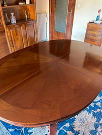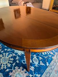 Tavolo L’Origine Home Elegans, brand italiano di arredamento pregiato Made in Italy, sinonimo di qualità artigianale e materiali selezionati. Realizzato in legno di ciliegio, questo tavolo da pranzo classico elegante si distingue per il piano rotondo con raffinata venatura e la struttura solida, tipica dei mobili di alta gamma. Ideale per sala da pranzo o soggiorno, è perfetto come tavolo in legno massello, tavolo classico di qualità o complemento d’arredo per ambienti eleganti, unendo design senza tempo, robustezza e prestigio. Il tavolo ovale in legno del marchio l'Origine ha dimensioni 18x140 cm compreso di meccanismo allungabile e due allunghe da 40 cm ciascuna inserite in un cassetto interno nascosto. In regalo 4 sedie. Rimango a disposizione per altre foto o informazioni.