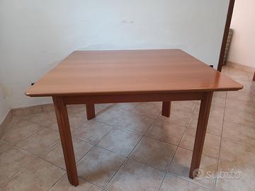 Tavolo cucina sala da pranzo in legno massello di ciliegio, lucidato Dimensioni 112cm x 112cm Altezza 75cm Possibilità di inserire tavola allungabile all'interno che non è presente, in quanto il tavolo si può aprire al centro.