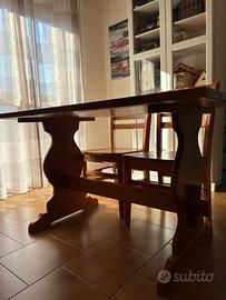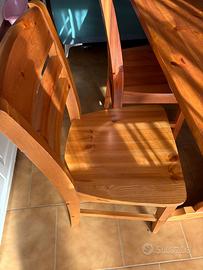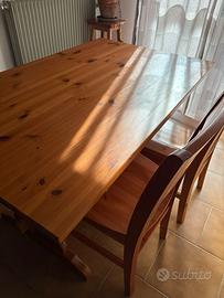 Vendo tavolo e 4 sedie in legno di pino colore mogano. Buone condizioni. Vendo a 150€