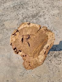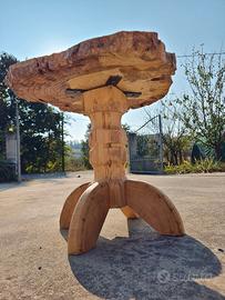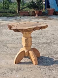 Tavolino in legno di pioppo realizzato a mano con piano costituito da sezione di quercia centenaria lasciata grezza. Altezza 50cm Diametro medio di 60cm Prezzo trattabile
