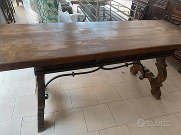 Tavolo in legno massiccio, legno di quercia, spessore 5 cm lung 205 cm grande 70 cm , particolare perche il tavolo è a incastro quindi la parte superiore si può staccare dalle gambe , il tavolo ha tre cassetti ( lavorati ) per posare e tovaglie molto comodo, il tutto in condizioni ottime, qualche segno dovuto a usura c’è , disponibile per altre foto o info.