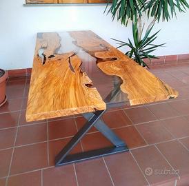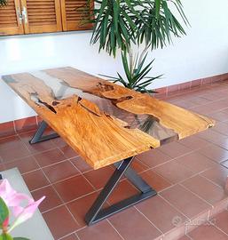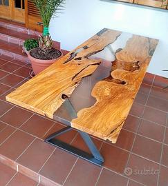 Tavolo in legno di ulivo e resina.