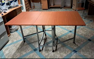 Tavolo in legno e acciaio con rotelle+ 4 sedie