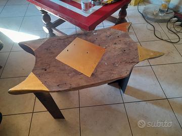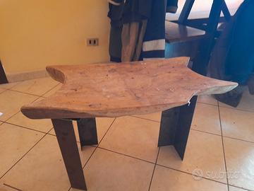 Il tavolo a il.piano in legno...7 cm..x 80cm x 40 cm le gambe in ferro da 43 cm x 2 millimetri.di spessore molto.resistente...