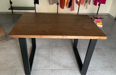 Vendo tavolo dallo stile industriale, con piano in legno e gambe in ferro verniciato nero.