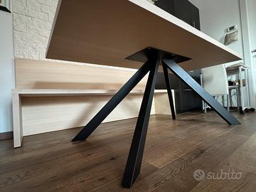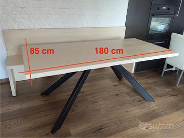 Vendo tavolo in legno con gambe nere in ferro e panca abbinata, entrambi realizzati da un mobilificio della Brianza, con ottima qualità artigianale.