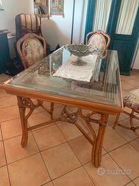 TAVOLO IN LEGNO E RATTAN