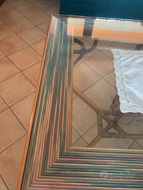 TAVOLO IN STILE ARTE POVERA ,CON LEGNO DI CILIEGIO VETRO E RATTAN.