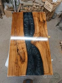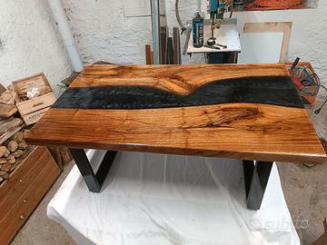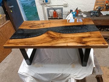 TAVOLO IN LEGNO E RESINA Tavolino da caffè con gambe in ferro - legno di Noce - finitura antigraffio trasparente - misure 96x55 cm -effetto onda con grigio perlescente Realizzato a mano con prodotti di ALTISSIMA qualità. Possibilità di altri tavoli su ordinazione! SI VENDE NON SI REGALA!!! per chi conosce il mondo di legno e resina sa cosa c'è dietro! Per info. 3478416853. Matteo O Messanger