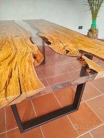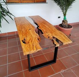 Creazioni di tavoli su misura in legno e resina. Tutti i tavoli sono fatti artigianalmente e quindi ognuno è un pezzo unico. La lavorazione, dalla scelta del legno adatto, al disegno e scelta del colore della resina, fino alla lucidatura finale è curata nei minimi dettagli per garantire il risultato gradito al cliente. Posso eseguire tavoli di qualsiasi misura su ordinazione. Contattandomi vi seguirò con piacere concretizzando l' idea che avete del vostro River table. Spedizione in tutta Italia.