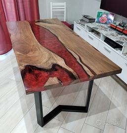 Creazione di tavoli artigianali su misura in legno e resina. Tutti i tavoli sono fatti artigianalmente e quindi ognuno è un pezzo unico. La lavorazione, dalla scelta del legno adatto, al disegno e scelta del colore della resina, fino alla lucidatura finale è curata nei minimi dettagli per garantire il risultato gradito al cliente. Posso eseguire tavoli di qualsiasi misura su ordinazione. Contattandomi vi seguirò con piacere concretizzando l' idea che avete del vostro River table. Spedizione in tutta Italia.