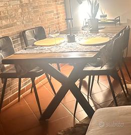 Tavolo in legno con gambe in ferro ( 80 X 1,60)con 4 sedie in pelle nera ( Maisons du Monde)