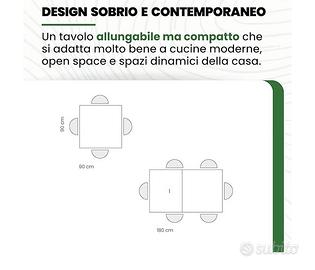 Tavolo 90 x 90 x 75 allungabile 180 , legno vetro made in Italy