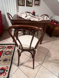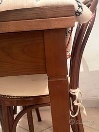 Tavolo in legno stile arte povera 90x90 estensibile a 180 cm + ; sedie in legno stile Thonet con seduta in paglia di Vienna. 120 € trattabili , vendibili anche separatamente. Si trovano a Rocca di Cambio (AQ) a 120 km da Roma ma possono essere consegnati a Roma.