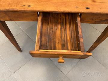 Come da descrizione, tavolo in legno fine ‘800, completamente restaurato. Con cassetto. Ideale per piccola cucina o come scrittoio o piccola scrivania. Trattato con olio di lino. Misure 107 lunghezza x 63,5 larghezza x 74 altezza.