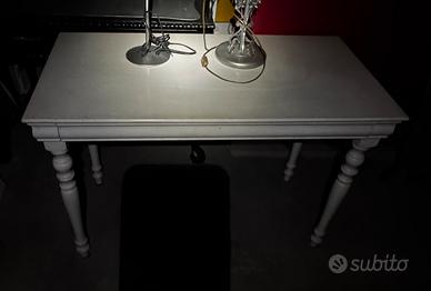 Tavolo in legno con finitura bianca, probabilmente in stile shabby chic, con gambe tornite. Arteferretto Made in Italy Scrittoio in Stile Luigi Filippo Laccato. Larghezza 109 Profondità 55 Altezza 74 € 280 trattabili