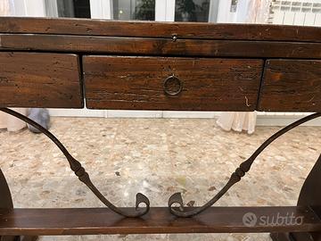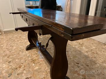 Tavolo in legno - fratino - Tiferno - arte povera Tavolo in lento massiccio della Tiferno con tre cassetti. Dimensioni: 70x170 cm. Altezza 79 cm. Da chiuso: 35x170 cm. Della stessa linea abbiamo anche Credenza in legno