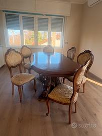Tavolo in legno intarsiato e sedie