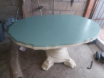 tavolo in vero legno ristrutturato in stile charme chic ovale a 8 posti in buone condizioni