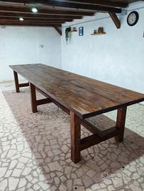 Vendo tavolo in legno fatto a mano, lunghezza 4 metri e largo 1 metro. Ritiro solo di persona qui
