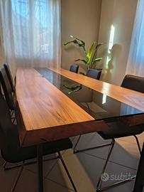 Vendo tavolo nuovo in olmo e vetro temperato fumè.