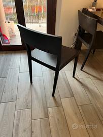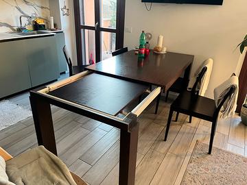Tavolo allungabile da 6 a 8 posti in legno massello ed alluminio, 4 sedie legno colore vengé. (Chiuso 90x140. Allungato 200x90)