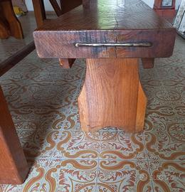 Splendida e robusta tavola in legno massello lunga circa 3 metri con quattro panche.