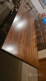 Tavolo L. 300 cm x 100 cm realizzato in legno massello spessore 5 cm con prolunga arriva a 400 cm