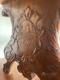 Vendo elegante tavolo in legno massello completo di 6 sedie abbinate, stile classico con splendide lavorazioni intarsiate.