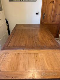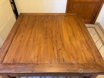 tavolo in legno massello, molto solido e stabile. Design rustico con gambe tornite, perfetto per cucina, sala da pranzo o casa di campagna. Il tavolo è allungabile e diventa molto grande, ideale per ospitare amici e famiglia. Misure: •Altezza: 82 cm •Dimensioni chiuso: 108 × 108 cm •Allungabile di 47 cm per lato •Dimensioni completamente aperto: 202 cm Il legno ha bellissime venature naturali che lo rendono caldo e accogliente. Struttura robusta e di qualità, fatto per durare nel tempo. Perfetto sia per ambienti rustici che moderni. (Piccole imperfezioni dovute all’utilizzo, per info contattatemi pure!)