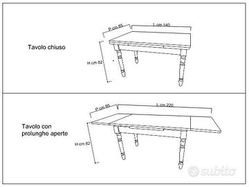 Il piano è rettangolare con due prolunghe laterali estraibili che permettono di estenderlo facilmente, rendendolo ideale sia per l’uso quotidiano che per ospitare amici e parenti.