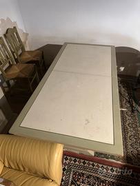 Vendo tavolo in noce massello, buone condizioni generali. Qualcue segno dovuto al tempo ma si tratta di un prodotto comunque di qualità. Vendo con 4 sedie incluse nel prezzo. Misura 85x180 con allungamento massimo di 3 metri.