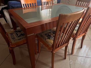 Vendo tavolo allungabile in legno massiccio con piano in vetro satinato, completo di 6 sedie