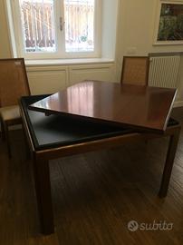 Vendo tavolo in legno massello color noce di ottima qualità. Apribile e contenitivo. Stile anni '70 Misure 110 * 110 Aperto 110* 220