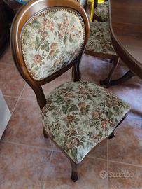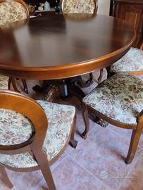 Tavolo rotondo allungabile al centro in legno massello con 6 sedie imbottite