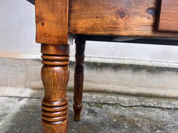 Vendo tavolo in legno massello. Restaurato con cura artigianale, presenta gambe tornite dal profilo elegante e un pratico cassetto con maniglia in metallo, perfetto per riporre eventuali oggetti.