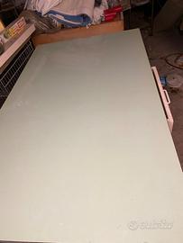 Piano in legno laccato verde chiaro, superficie liscia e facile da pulire.