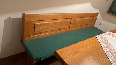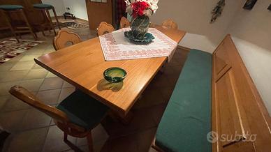 Bellissimo tavolo da pranzo in legno massello stile rustico, completo di panca angolare e 4 sedie coordinate. Struttura solida e molto robusta, ideale per taverna, cucina o casa di montagna. Prodotto a a Mestre , non si sperisce